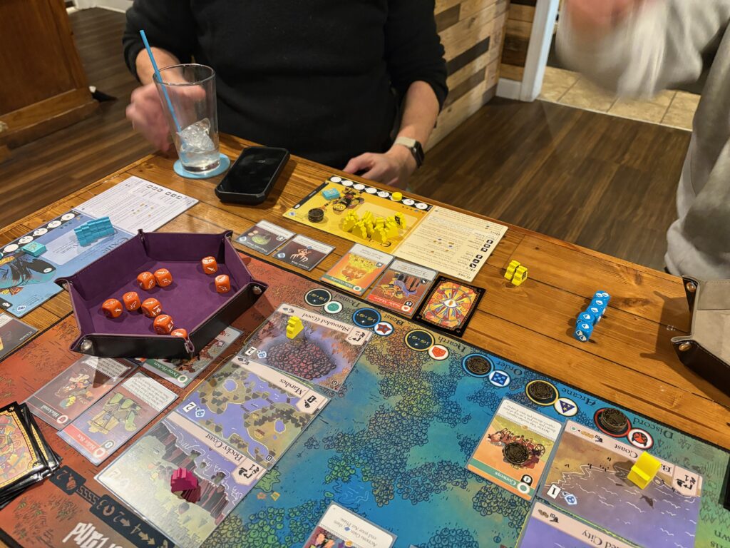 Matt was able to use his player powers. Almost every turn which allowed him to move up the red track easily and then he was able to also move up the yellow track.